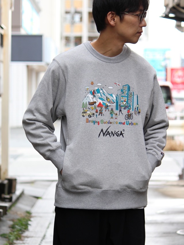 【商品説明】 NANGAの定番「エコハイブリッド」シリーズから、 今年だけの特別グラフィックを落とし込んだクルーネックスウェットが登場。 テーマは 「Bridging Outdoors and Urban」。 自然と都市を背景に、 登山・キャンプ・釣り・ランニング・スケートボード・ボルダリングなど、 アウトドアと日常を自由に行き来する人々の姿を描いた、遊び心あるグラフィックが印象的です。 アウトドアウェアという枠を超え、 “街でも自然でも自分らしく楽しむ” そんなライフスタイルを表現した一着に仕上がっています。 ============================ 【素材・着心地】 素材には、軽量で滑らかな肌触りと柔らかな着心地が魅力の **リサイクルコットン「Ferre Yarn(フェレーヤーン)」**を採用。 内側は通年使いやすい 裏毛仕様。 裏起毛に比べて軽やかで、 秋・春はもちろん、冬はインナー使いもしやすい素材感です。 さらにポリエステルを混紡することで、 生地に強度としなやかさをプラス。 デイリーに着ても型崩れしにくく、長く愛用できます。 Ferre Yarn(フェレーヤーン)とは GRS(Global Recycled Standard)認定を取得したリサイクルコットン。 リサイクルコットンを色分けし、独自技術で糸へ再生することで、 紡績工程でのエネルギー消費を大幅に削減。 環境への負荷を抑えた、NANGAらしいサステナブル素材です。 ============================= 【スタッフ着用コメント】 スタッフ(173cm / 60kg)で Sサイズ着用。 やや大きめの作りなので、Sサイズでも程よくゆとりがあり、 リラックス感のあるシルエットで着られます。 color :L.グレー・ブラック ※実店舗との在庫共有の為、売切れの場合がございます その際はこちらからご連絡させていてだきます [サイズ] S/M 肩幅/身幅//袖丈/着丈 48cm/57cm/59.5cm/71cm 50cm/59cm/61cm/73cm ※サイズ計測の多少の誤差はご了承ください。 【素材】 本体:ポリエステル 54%・コットン 43%・レーヨン リブ:ポリエステル 47%・コットン 45%・ポリウレタン 5%・レーヨン 3% 中国製 《NANGA》 社名の由来はヒマラヤにある8,000メートル級の高峰“ナンガバルバット”。伊吹山の麓、滋賀県米原市の創業74年の国産「羽毛商品」メーカーです。主にシュラフ(寝袋)やジャケット・パンツ等登山アパレルを国内生産しています。 ナンガの羽毛製品に使われる原料羽毛は100%海外からの高品質原毛を輸入しています ナンガの優れた検査技術と最新設備でし、大量の清水と確かな経験、管理の中で洗浄する事で、薬品処理をしなくても羽毛の性能を最大に生かした高品質のダウンを供給しております。