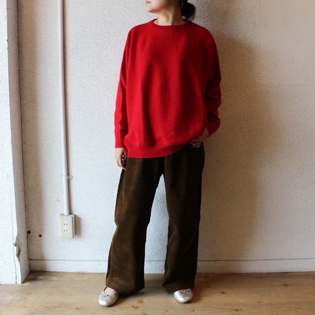 【商品説明】 カシミヤのような滑らかな肌触りが特徴のポリエステル/ヴィスコース素材を使用した、ストレッチ入りのカシミアタッチ ワイドパンツ。 極細の糸を使用し、両面に繊細な起毛加工を施すことで、暖かさと上質なぬめり感を両立。思わず触れたくなるほどのなめらかさと、抜群の履き心地を実現しています。 2タック入りのワイドシルエットは、生地の落ち感によって広がりすぎず、リラックスしながらも綺麗に見える絶妙なバランス。 カラーは深みのあるチャコール。 近年人気だったブラックパンツに代わって、スタイリングに新鮮さを与えてくれる一本です。 特にブラック系のアウターが多い方には、自然なグラデーションでまとまりが生まれ、抜け感のある印象に。 ウエストはドローコード付きのゴム仕様で、イージーな穿き心地。 さらにベルトループも付いているため、カジュアルからきれいめまでオンオフ兼用で使える万能パンツです。 ⸻ 【スタッフコメント】 見た目は上品ですが、穿くと驚くほどラク。生地がとてもなめらかで、肌あたりが本当に気持ちいいです。 サイズ3で腰まわり・太ももに少しゆとりがあり、リラックス感のあるシルエット。 落ち感がしっかりあるので、ワイドでもダボつかず、スッと縦に落ちてきれいに見えます。 チャコールの色味も絶妙で、黒のアウターや靴との相性も抜群。 普段のコーデに少し大人っぽさを加えたい方にもおすすめです。 ⸻ 【サイズアドバイス】 ウエストはゴム+ドローコード仕様のため、幅広い体型の方に対応します。 173cm/60kgでサイズ3を着用し、程よくゆとりを持ったリラックスシルエット。 ワイドパンツながらも生地の落ち感で膨らまず、すっきりとした印象です。 [サイズ] 3/4 ウエスト/股上/股下/わたり/ 裾幅 73cm/34cm/65cm/37cm/26cm 78cm/35cm/66cm/38cm/26.5cm ※サイズ計測の多少の誤差はご了承ください。 (スタッフ(173cm / 60kg)着用サイズ:3) color:チャコール ※実店舗との在庫共有の為、売切れの場合がございます その際はこちらからご連絡させていてだきます 【素材】 コットン 48%・ヴィスコース 47%・ポリウレタン 5% 別布:コットン 100% ご家庭での洗濯可 LAMOND ラモンド ワイドパンツ 通販 インスタ 服 ジャケット LM-P-137