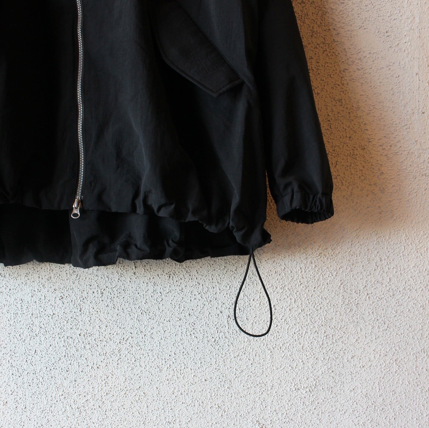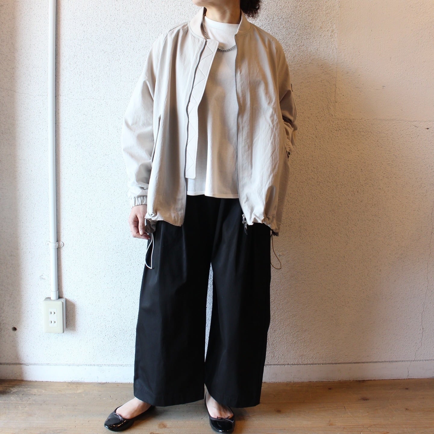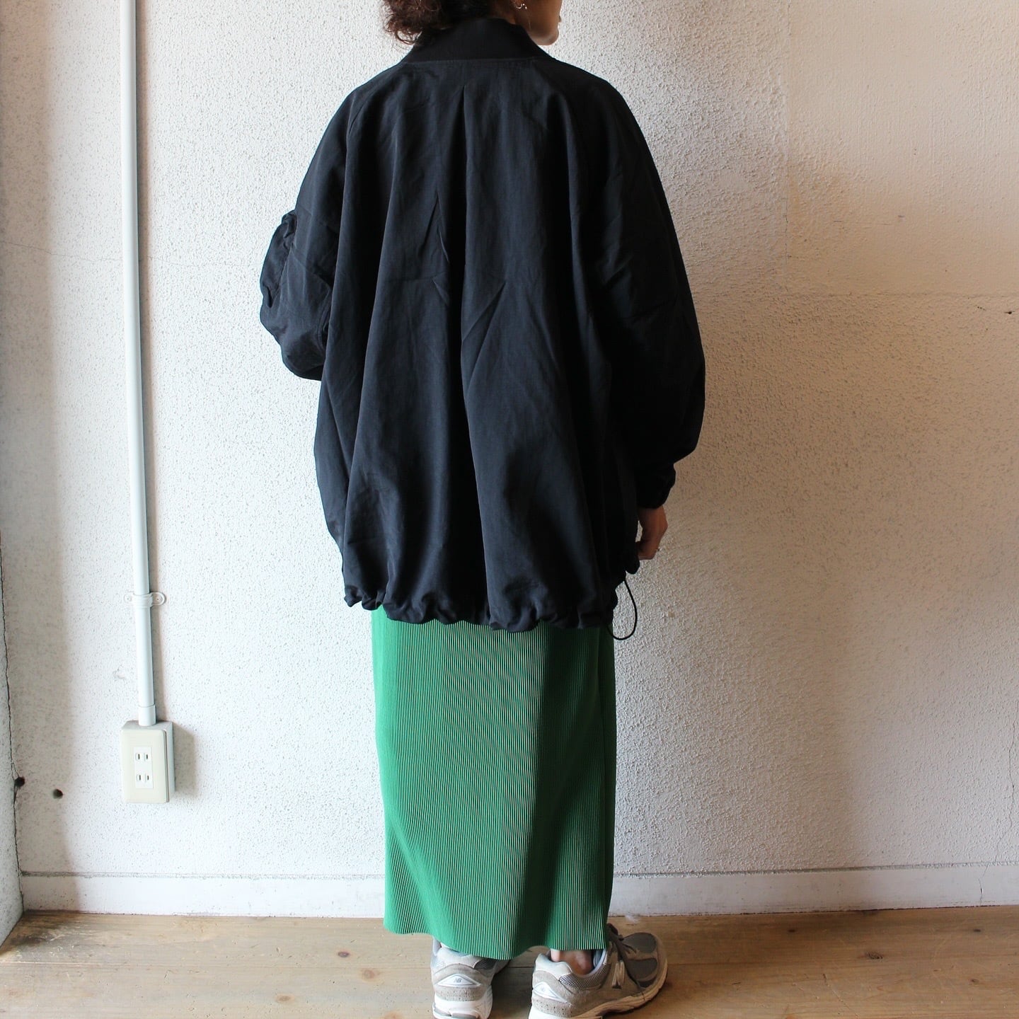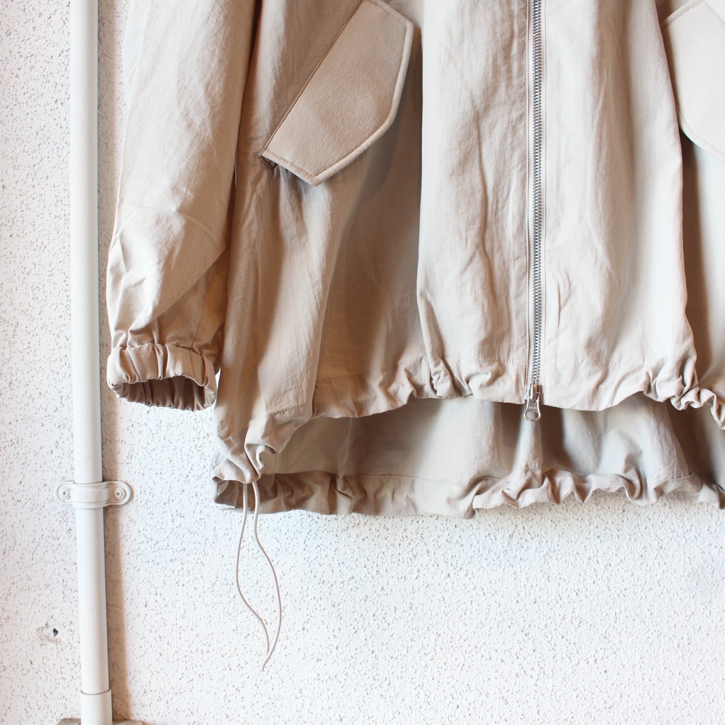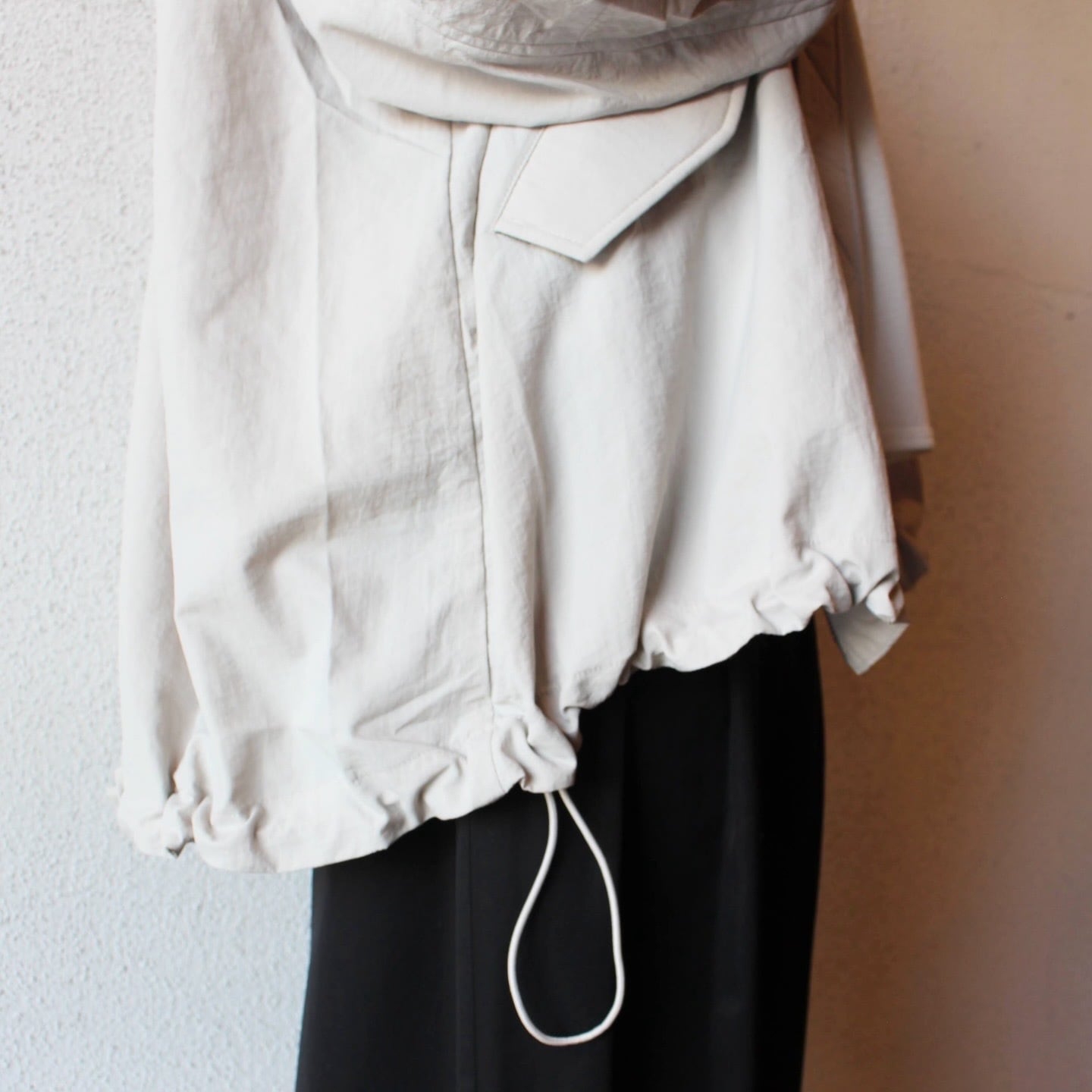 シルエットはAラインを基本としながらも、裾のドローコードを調整することでコクーンシルエットに変化させることが可能