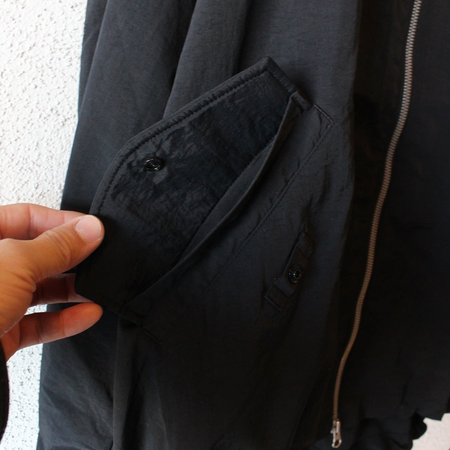 また、ボンバージャケットの要素を取り入れ、ファスナー付きの袖ポケットやフロントの前立て仕様など、細部にまでこだわったデザインを採用