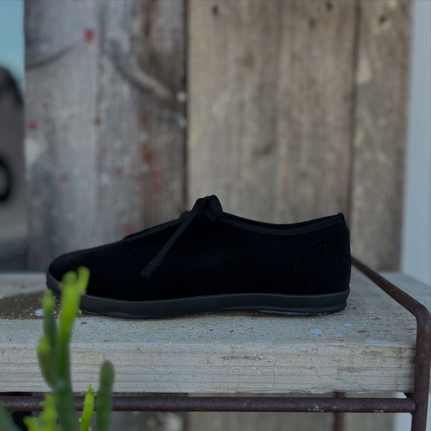 一枚もののアッパーに履き口のパイピングを靴紐にしたシンプルな一足
