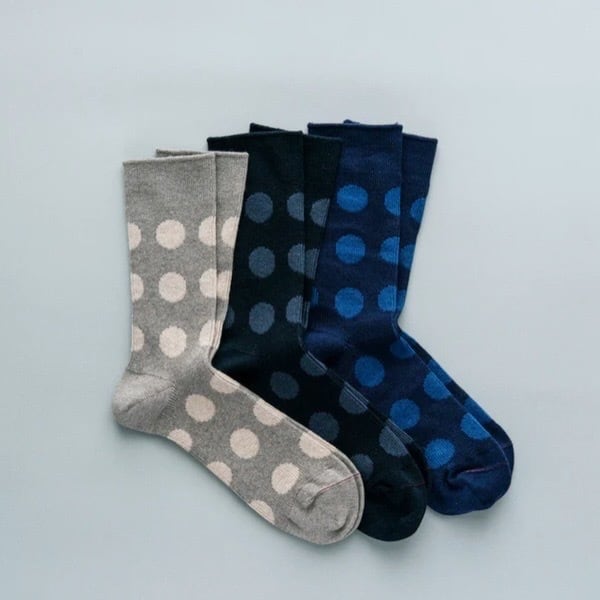 彼の建築に見られる特徴的な“丸窓”から着想を得た、ドット柄のコットンソックスです。