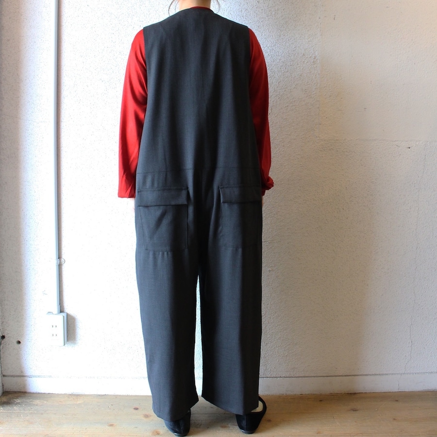 ウエスト切り替えにサイド3タックを入れ、落ち感のあるワイドシルエットに仕上げました