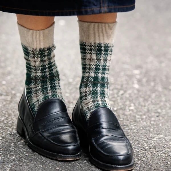 クラシックなチェック柄をあしらった、メリノウール素材のソックス