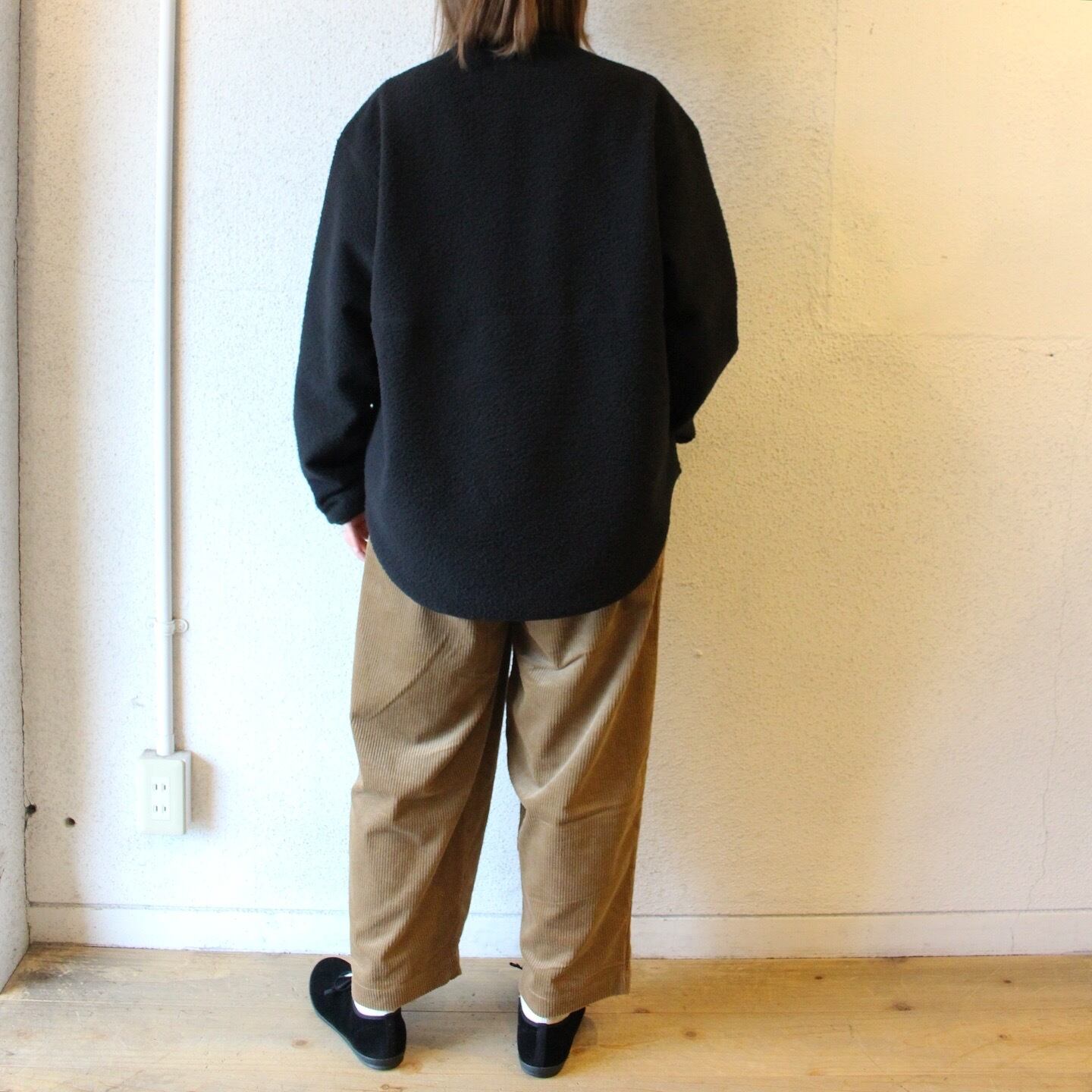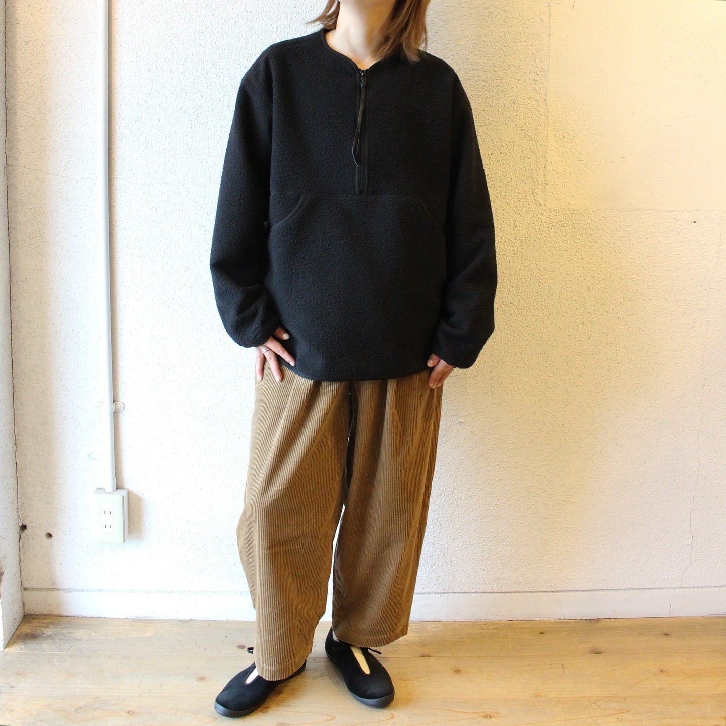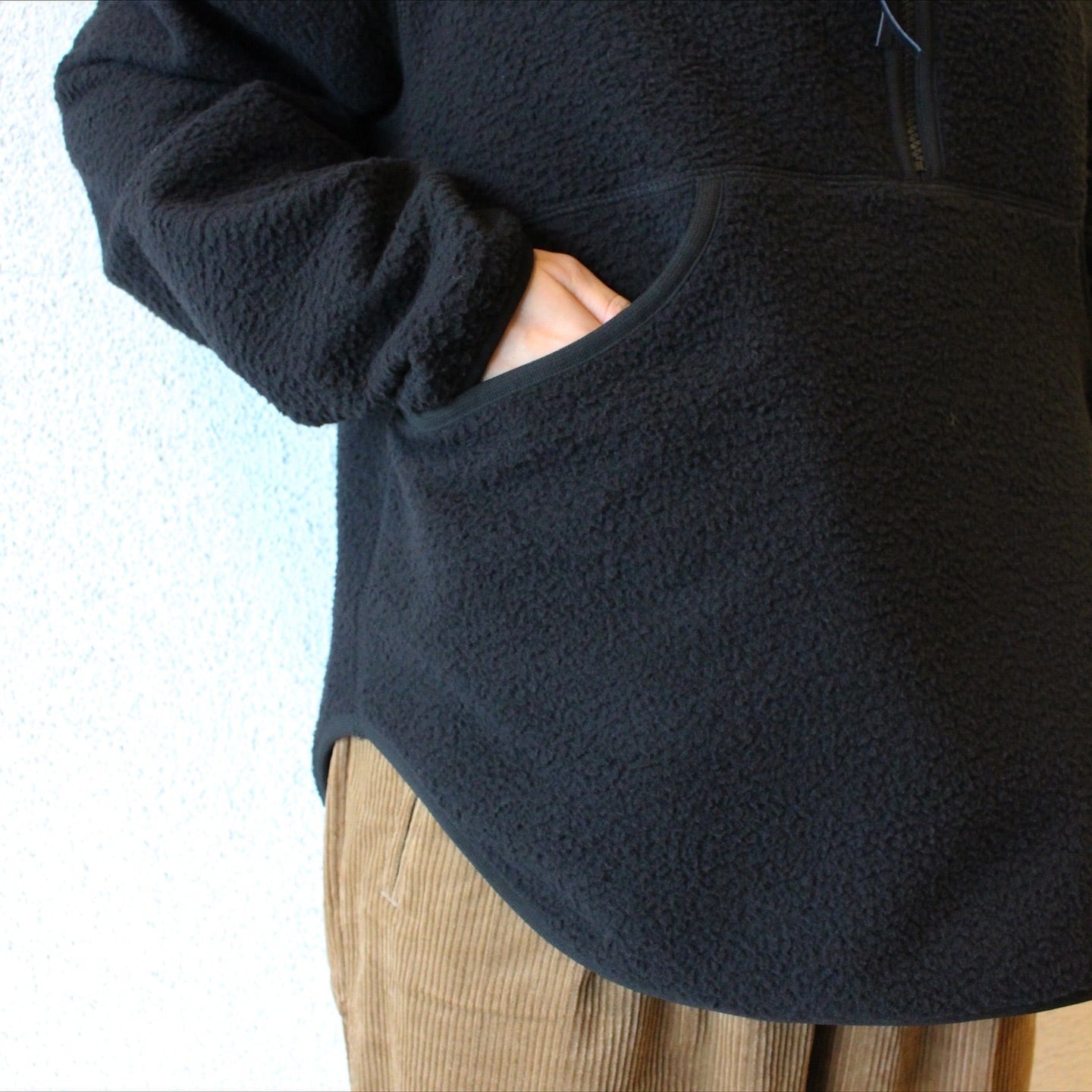 フロントファスナー付きのクルーネックプルオーバーで、肩幅・身幅にゆとりを持たせたボックスシルエット。
