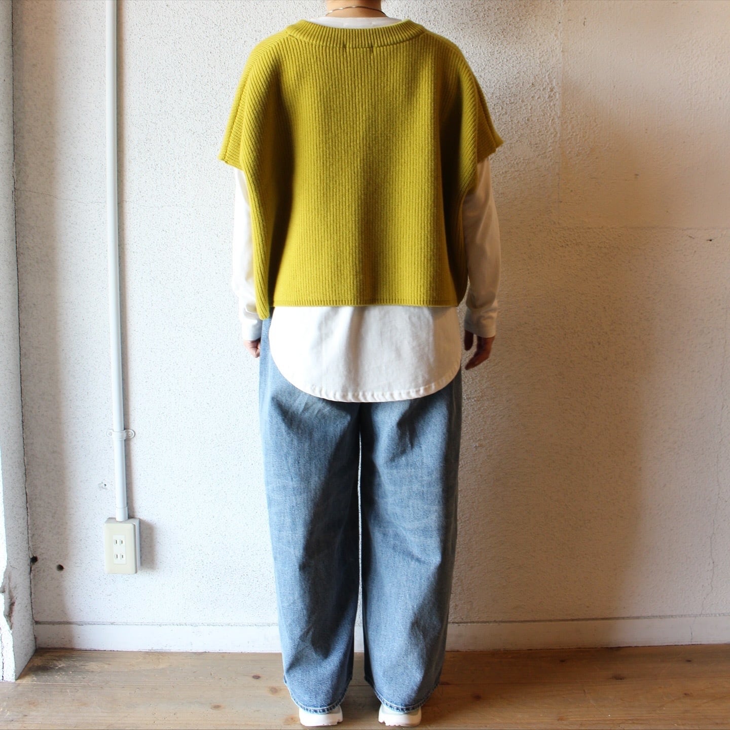 軽くてふくらみのあるメリノウールを使用した、畦編みのニットベスト。