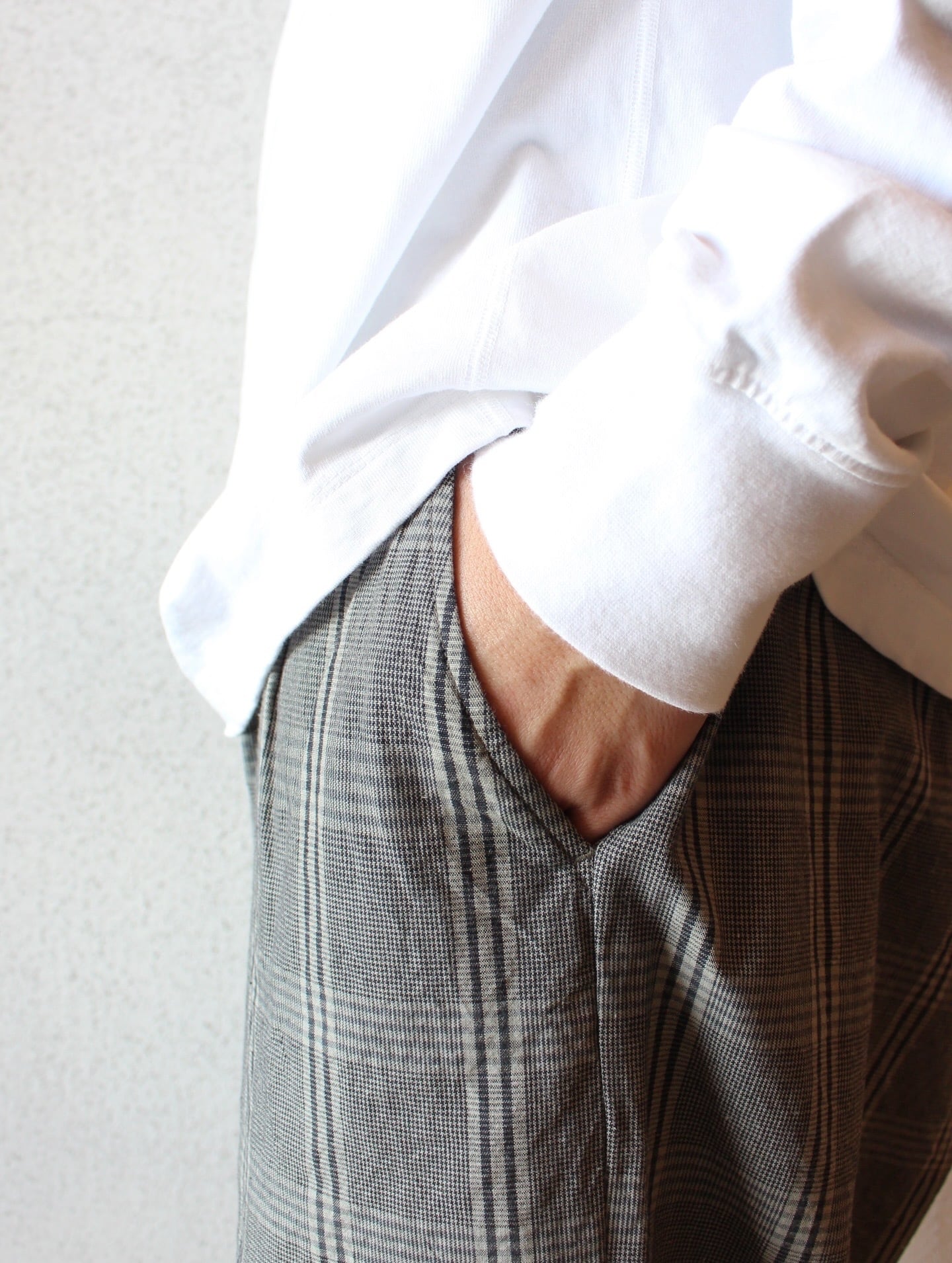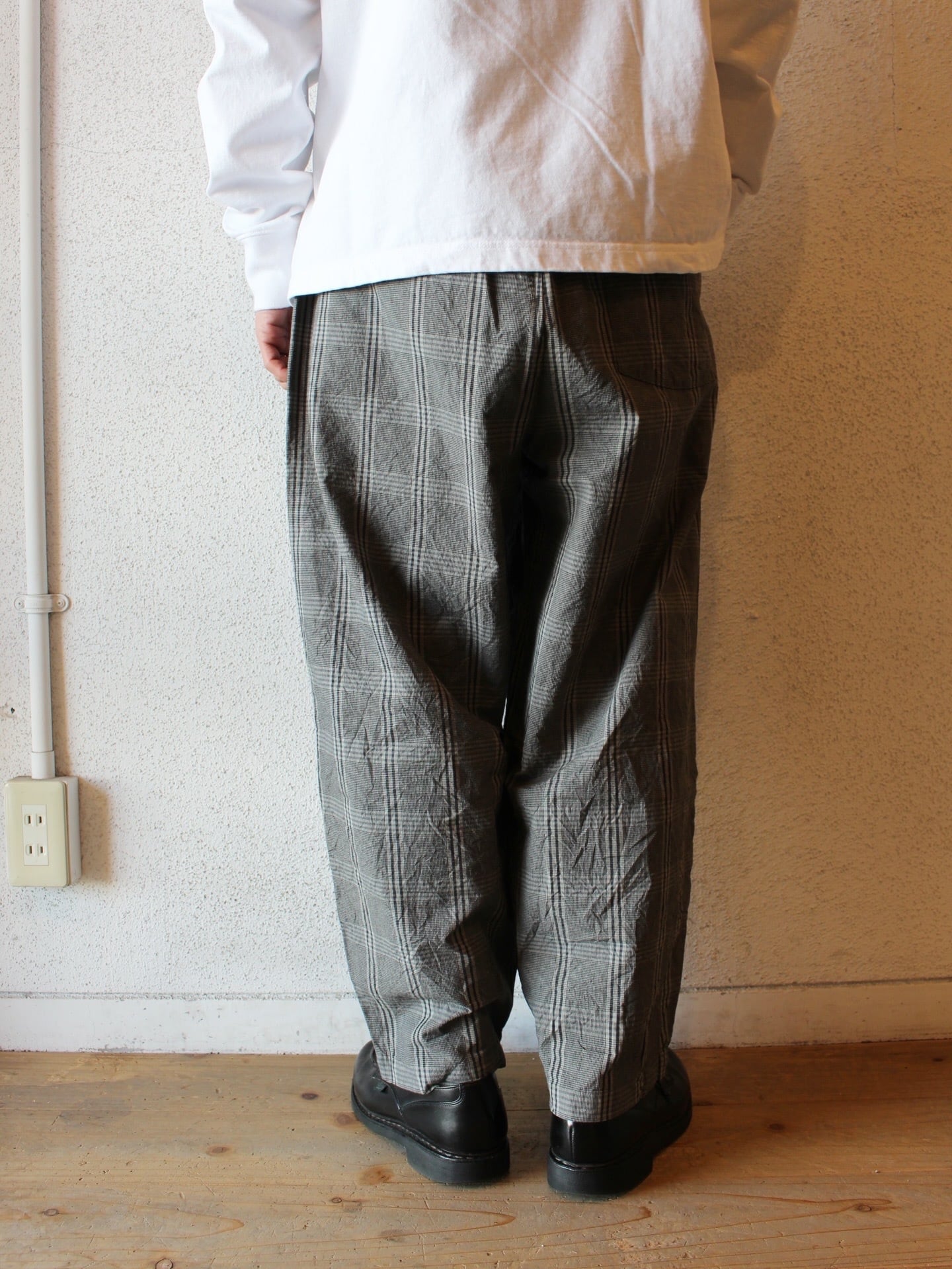 一本でスタイルの雰囲気を作ってくれる チェック柄ボリュームパンツ。