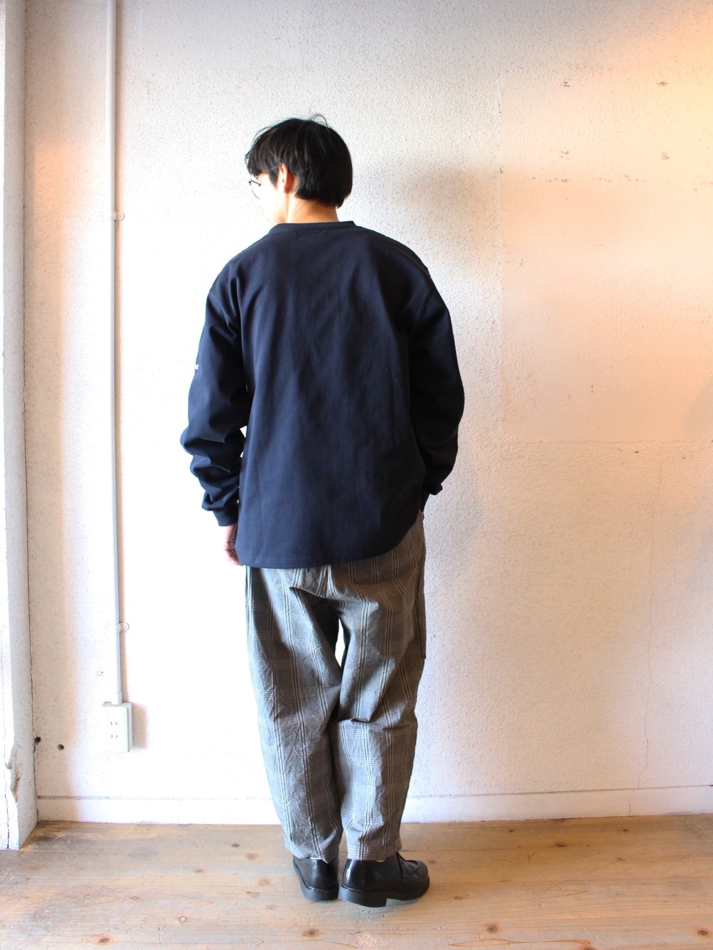 ガシッとした安心感のある生地ですが、実際に着てみると意外なほど柔らかく、肌触りの良さも魅力。タフさと着心地を両立した、毎日でも着たくなるロンTです。