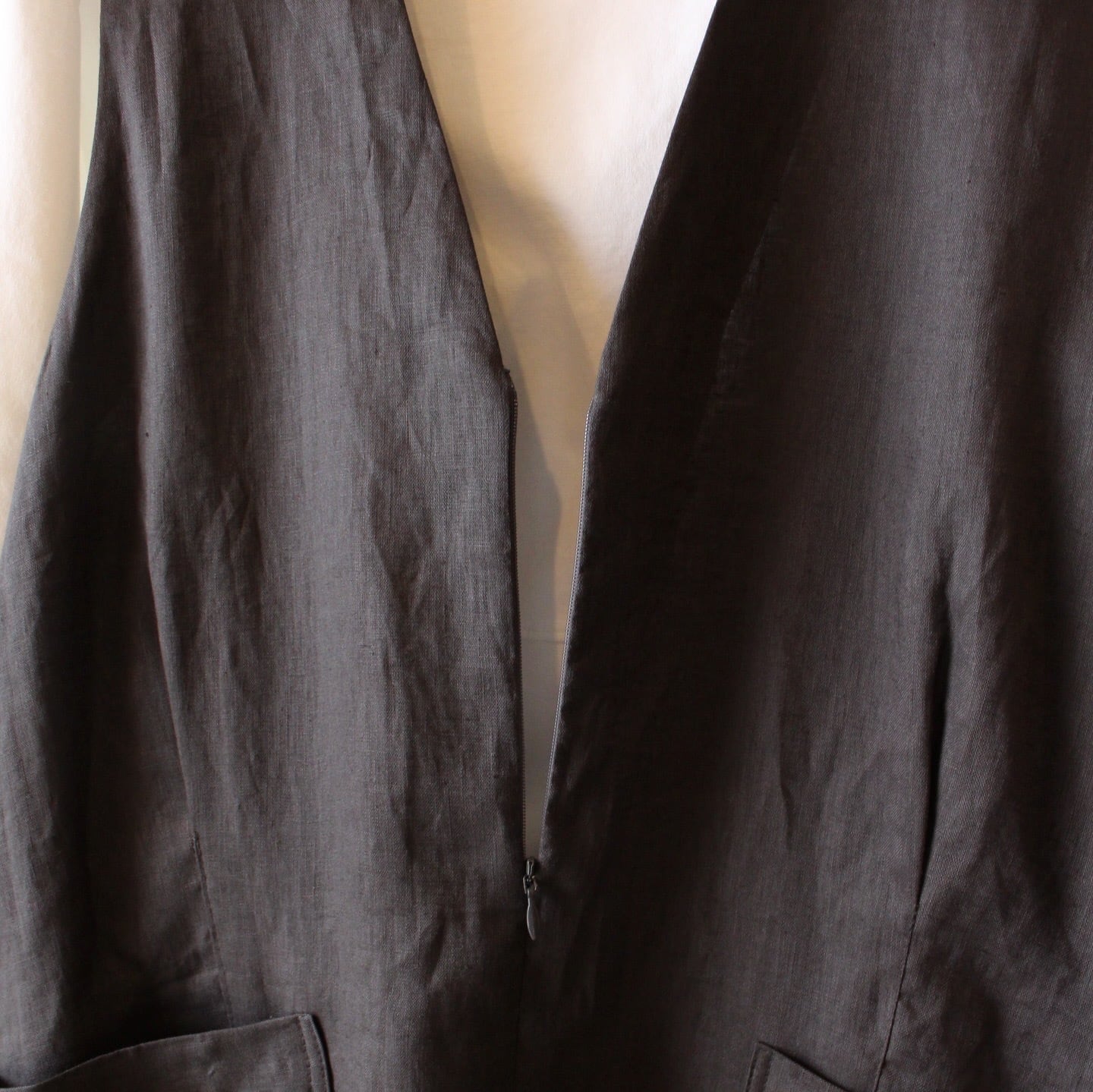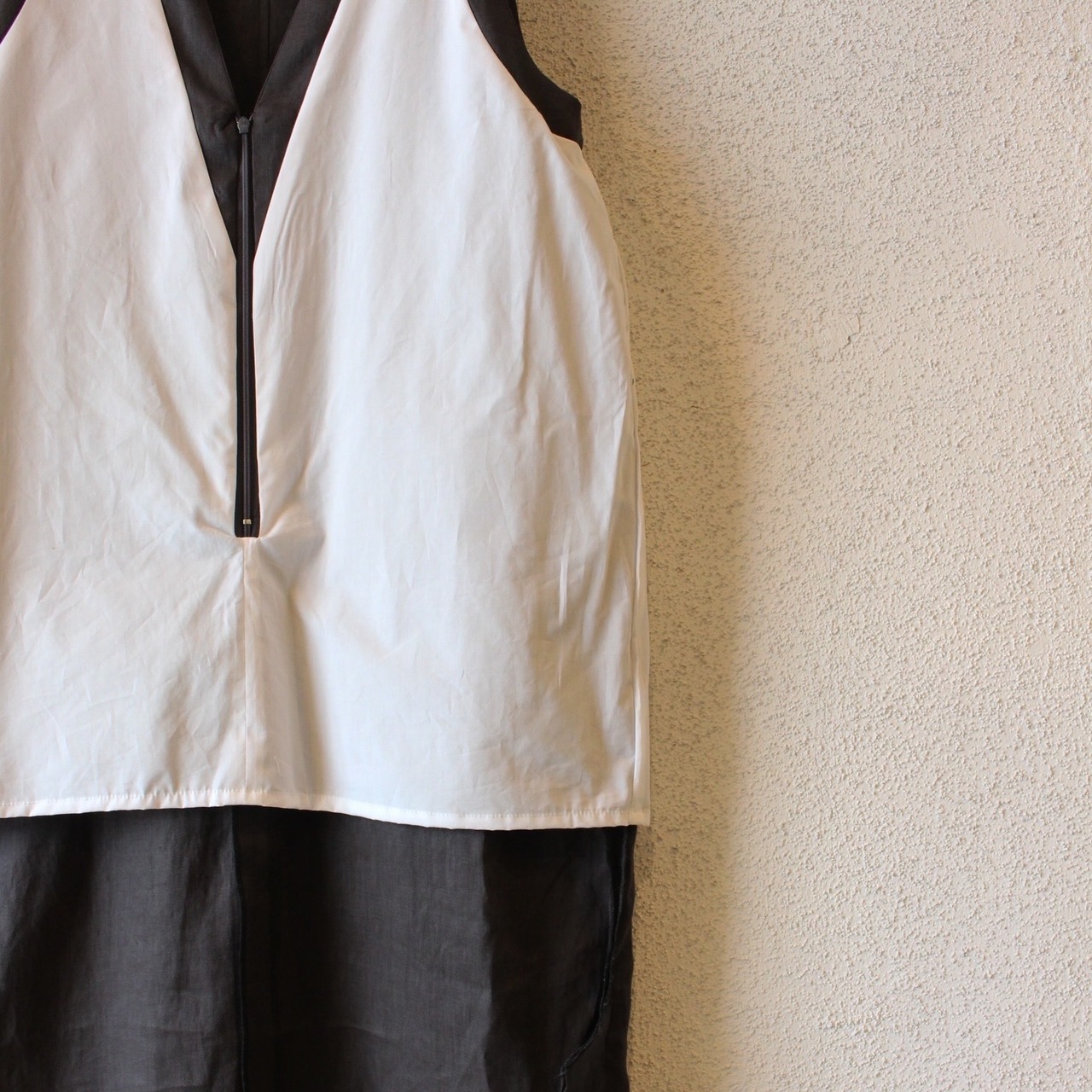 フロントはコンシールファスナー仕様で、見た目はすっきりしながら着脱もスムーズ。