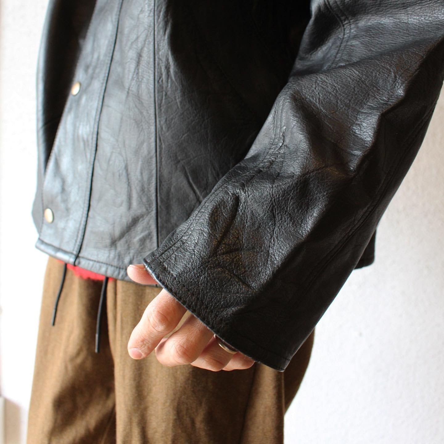 元々から軽くてとても柔らかく仕上げられたユーロレザーの古着を使っていることもあり、着始めからしっくりとくる着心地はこれまでのレザージャケットの常識を覆すほど、楽チンな着心地なのです
