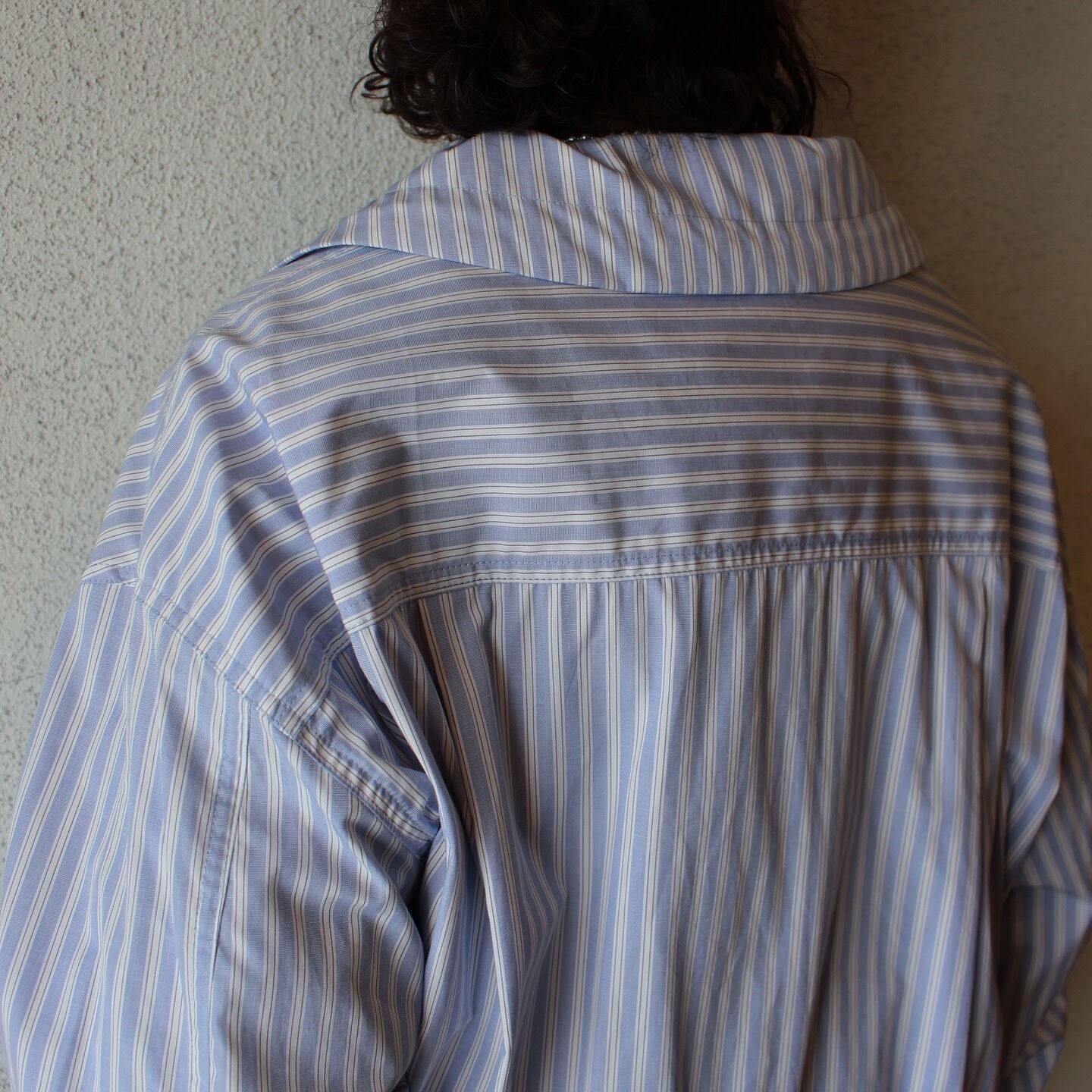 素材は適度なハリ感と滑らかで美しい表面のストライプ柄の生地