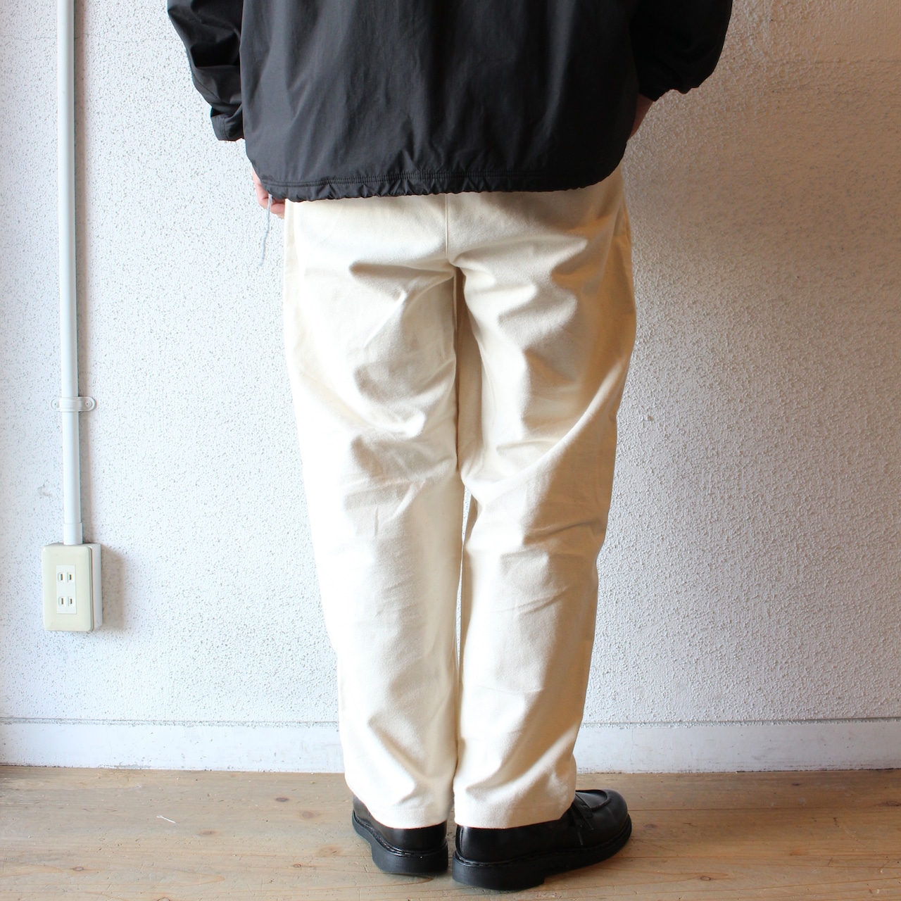 ウエストはシャーリングデザインにする事で、快適な着用感を実現。シンプルなデザインで幅広い着こなしをお楽しみいただける一本です