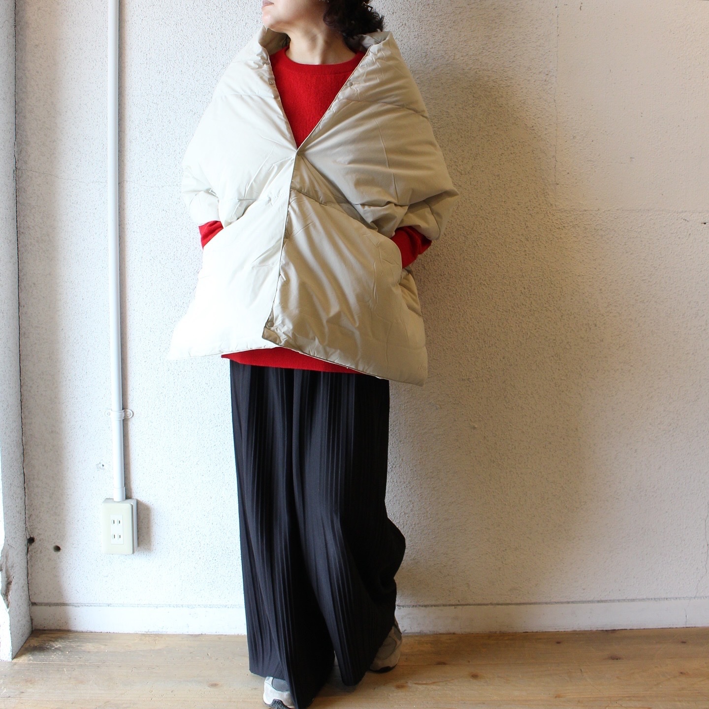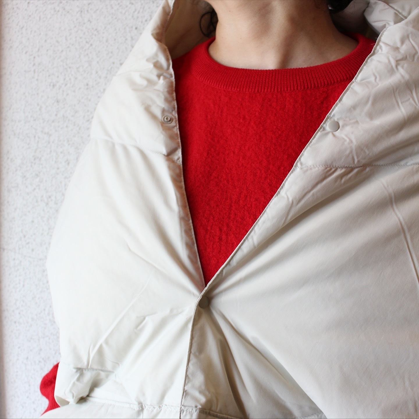 ストール型のダウンだから、ドルマンスリーブのような変形袖のインナーでも楽々